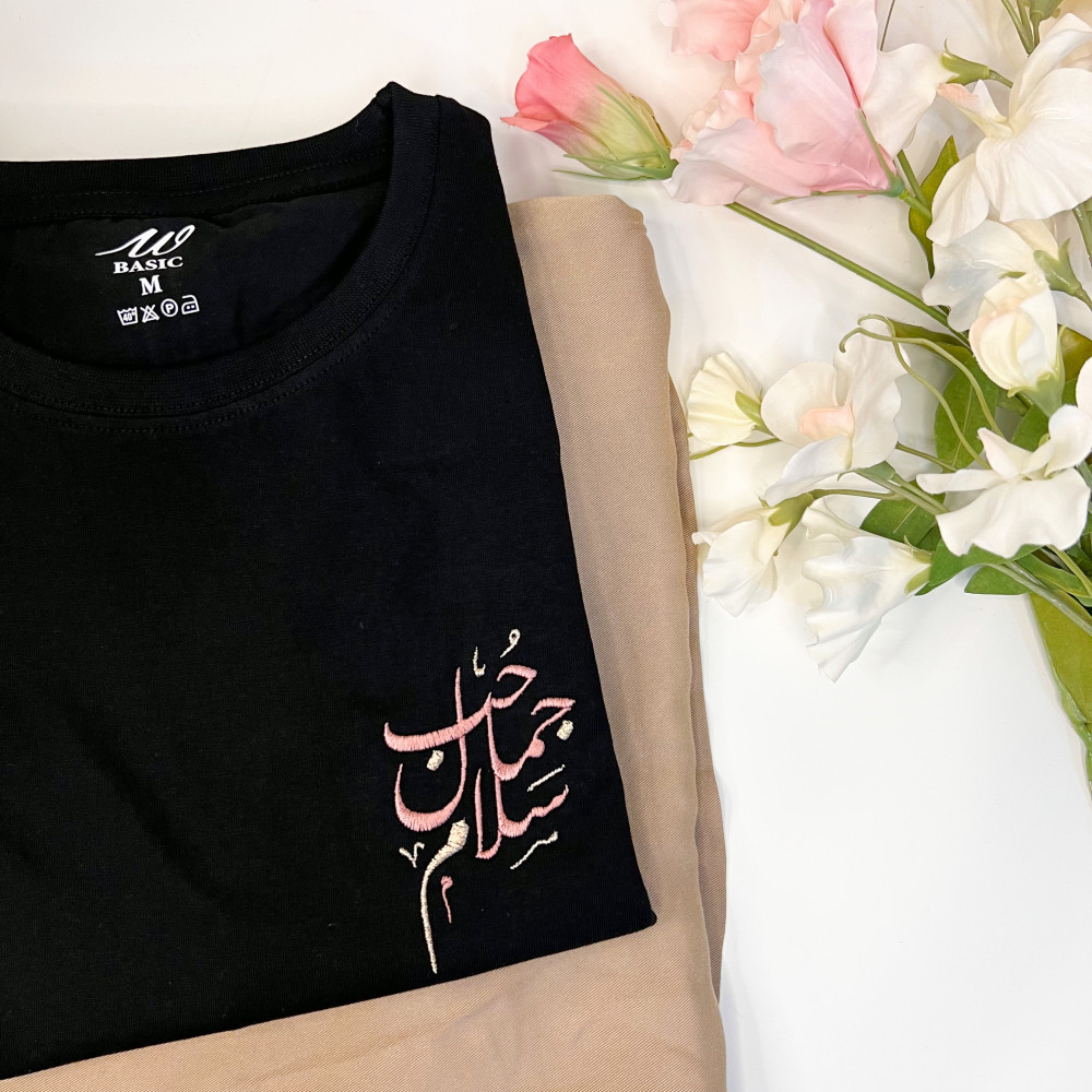 صندوق "حُب، جمال، سَلام" يحتوي على تيشيرت و كيس قماشي مُطرز بالكلمات